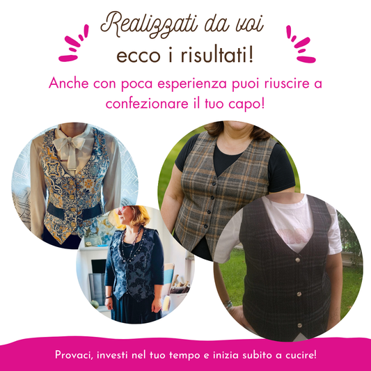 Dico solo questo: non mi piacciono i gilet. Ma appena ho visto quello di Elisa l'ho amato subito! I suoi cartamodelli sono sempre chiarissimi a livello grafico, con tutte le istruzioni da zero al minimo dettaglio, e i tutorial video sono di fatto dei mini corsi di cucito. Assolutamente consigliato in generale, questo modello poi è bellissimo e pensato per donne reali