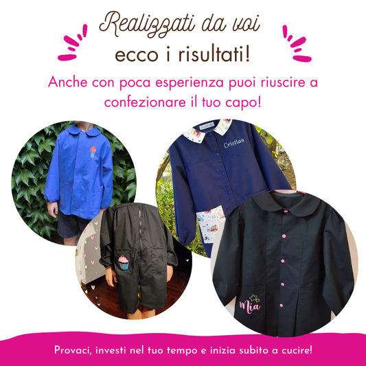 Grembiule Scuola primaria CARTAMODELLO da taglia 5 anni a 13 anni, UNISEX