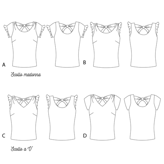 Blusa estiva donna CARTAMODELLO GINGER E MINI CORSO CONFEZIONE da taglia 40 a 54