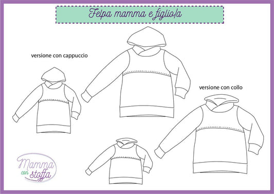 Felpa-abito Silvy CARTAMODELLO pdf donna da taglia XS a 5XL e bambini da 3 a 11 anni