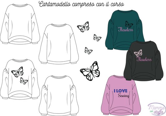 Felpa Donna CARTAMODELLO PDF tulip da taglia S a 6xl, con video tutorial confezione