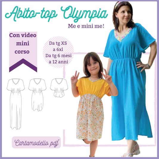 Cartamodello abito-copricostume-top donna e bambina OLYMPIA me e mini me!