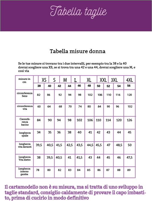 T shirt CARTAMODELLO PDF donna Rosita da taglia XS a 5xl