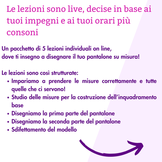 Dal corso più classico, a quelli dedicati ad imparare a confezionare bene i miei cartamodelli o realizzarne di vostri!