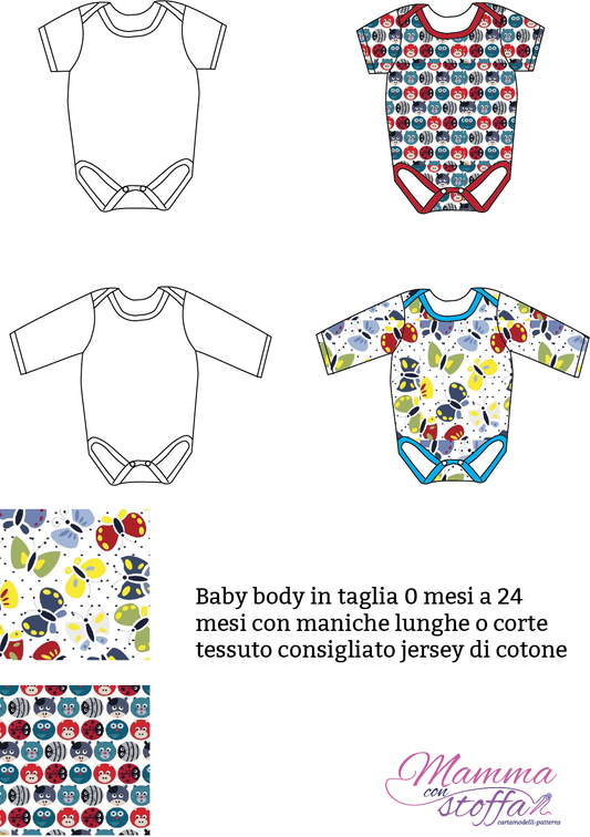 Body neonato CARTAMODELLO da taglia 0-1 mese a 24 mesi con sewing club