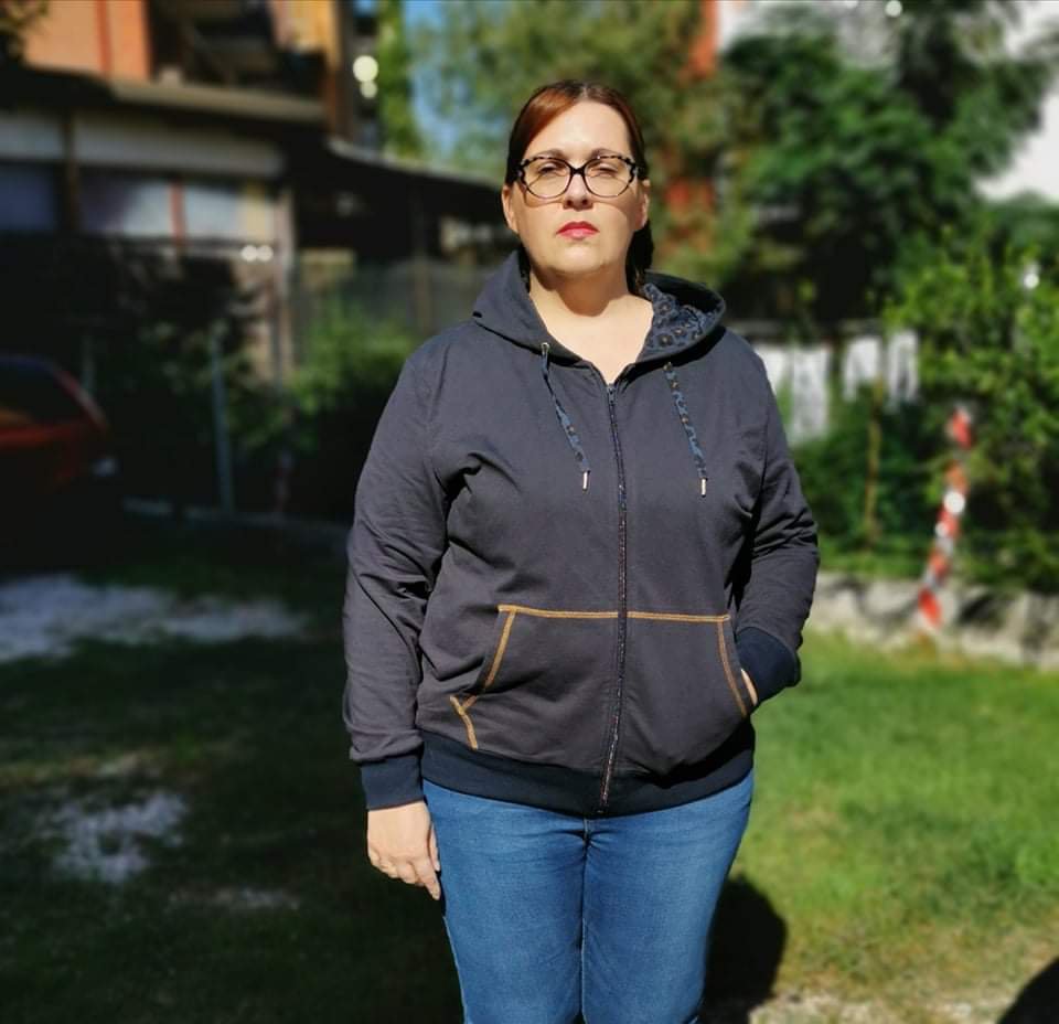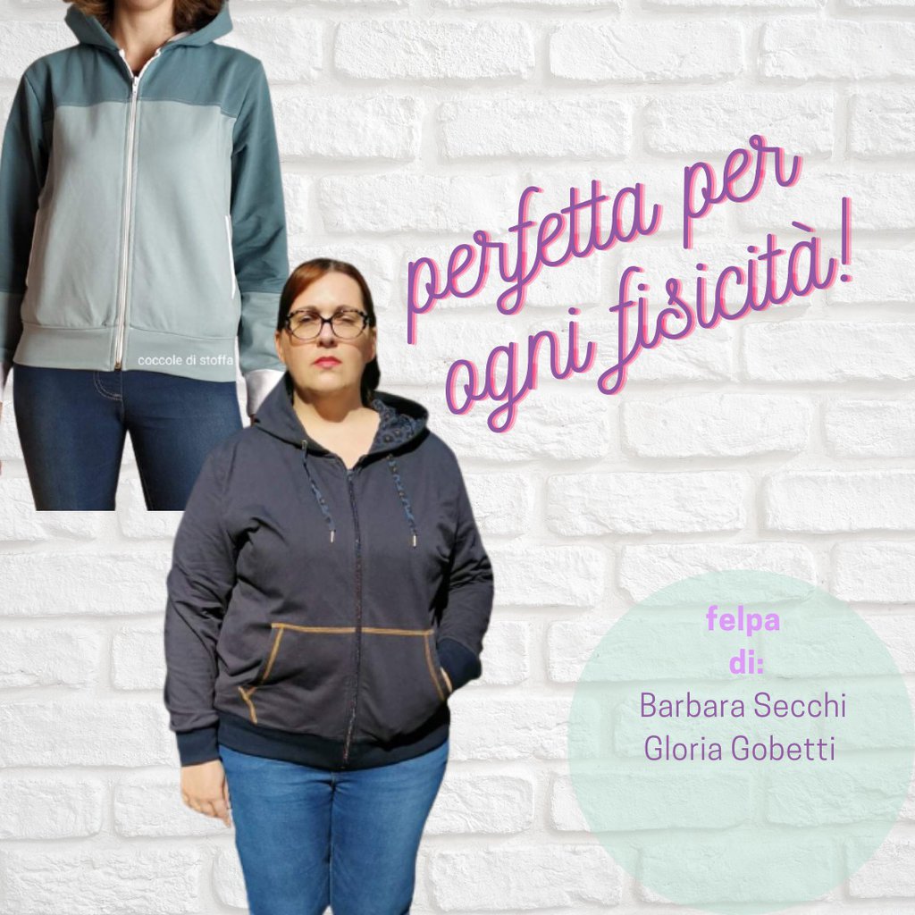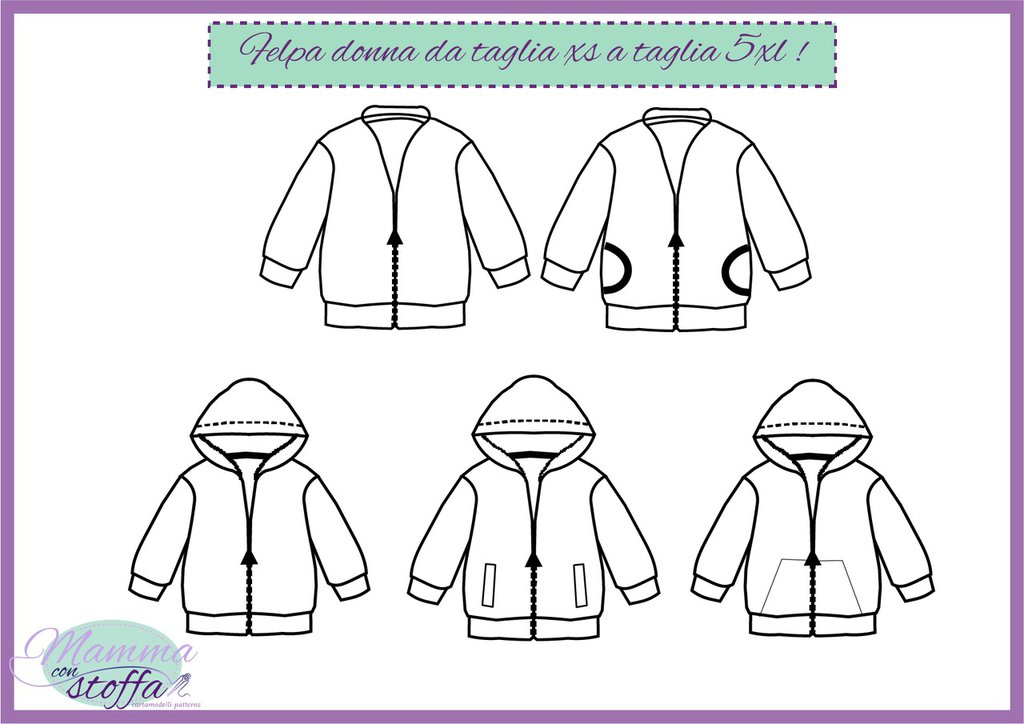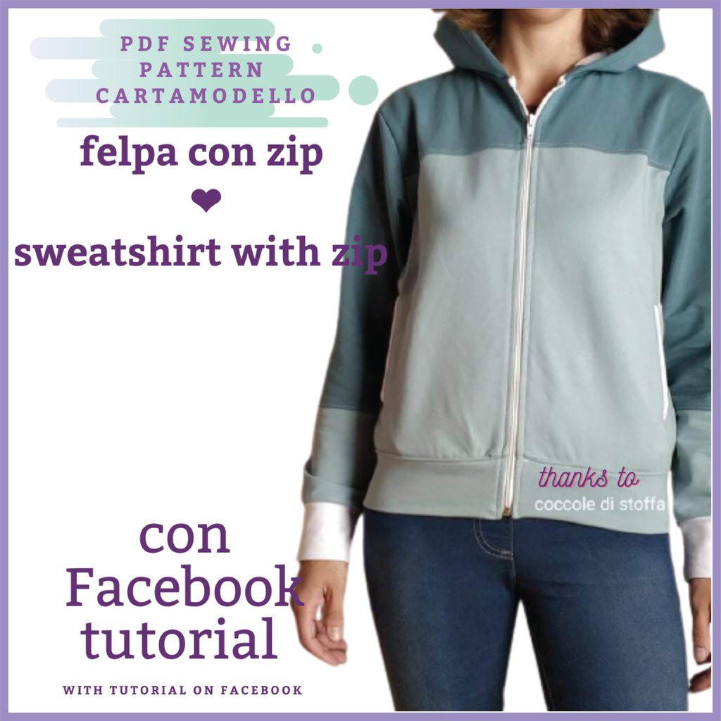 cartamodello FELPA CON ZIP DONNA in PDF FILE da taglia XS a 5XL con istruzioni SU gruppo Facebook dedicato alla realizzazione E INTERNE
