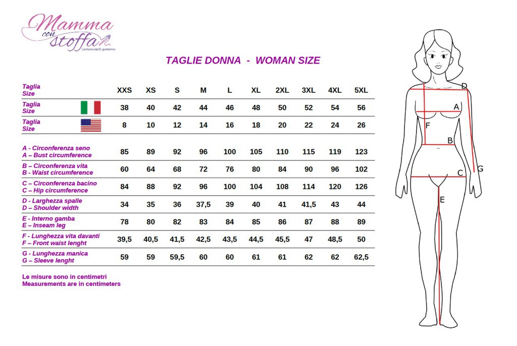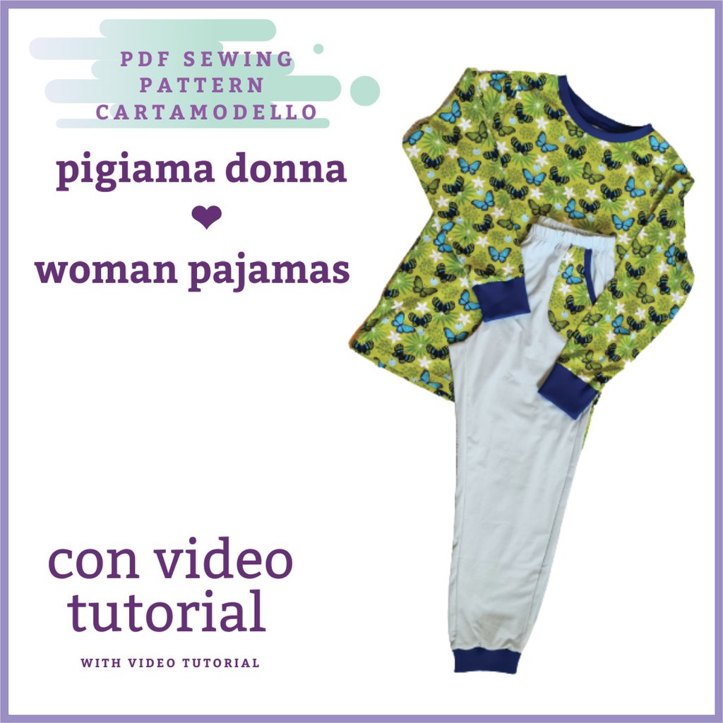 pigiama donna CARTAMODELLO PDF da taglia S a 3xl con video tutorial