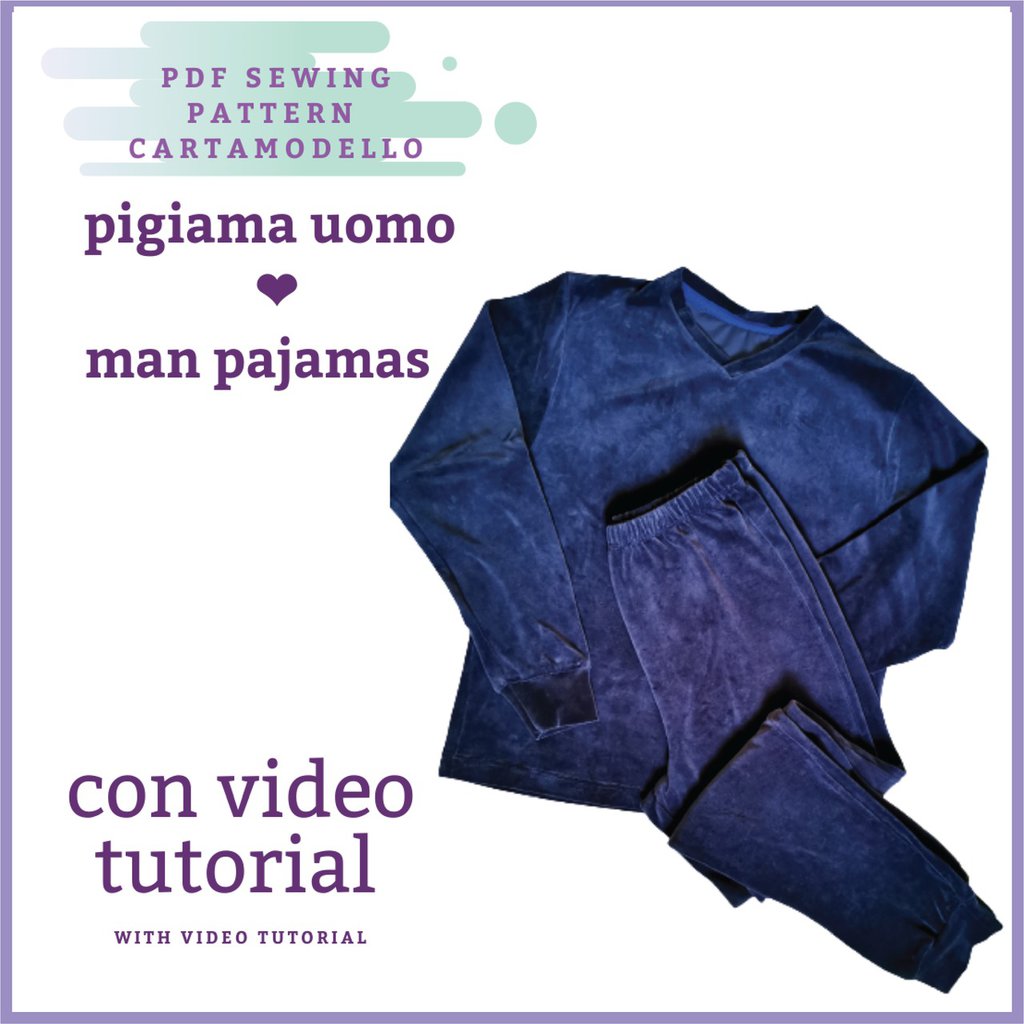 pigiama uomo CARTAMODELLO PDF da tagloa S a 3xl con video tutorial
