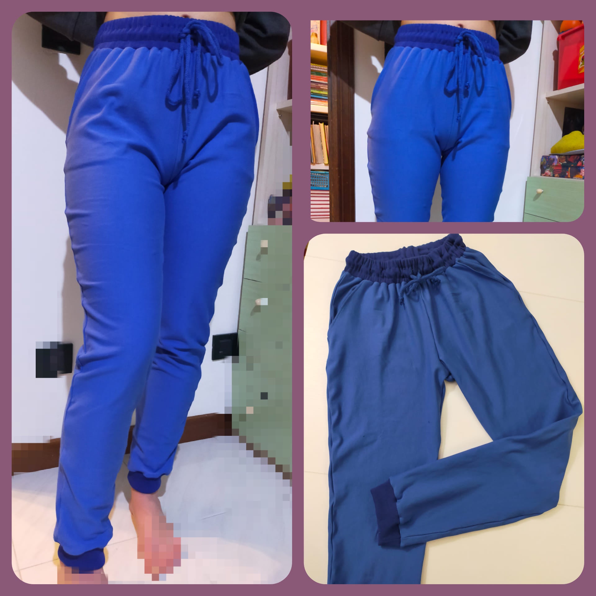 Realizza il tuo jogger pantalone, scegli la tua taglia dalla tabella misure presente nel file istruzioni, divertiti e crea la versione che più ti piace! con tasche alla francese o a filetto, oppure semplice senza tasche.